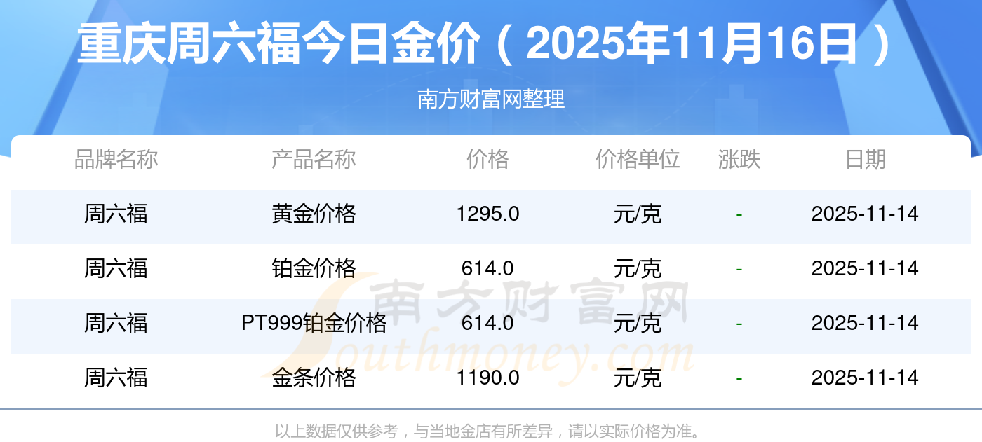 重慶周六福金價(jià)今日價(jià)格最新_重慶周六福黃金多少錢一克2025年11月16日,隨小編來了解一下詳情。
