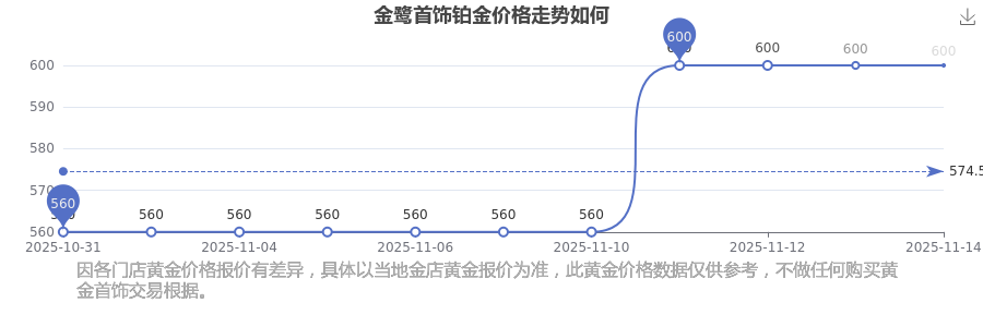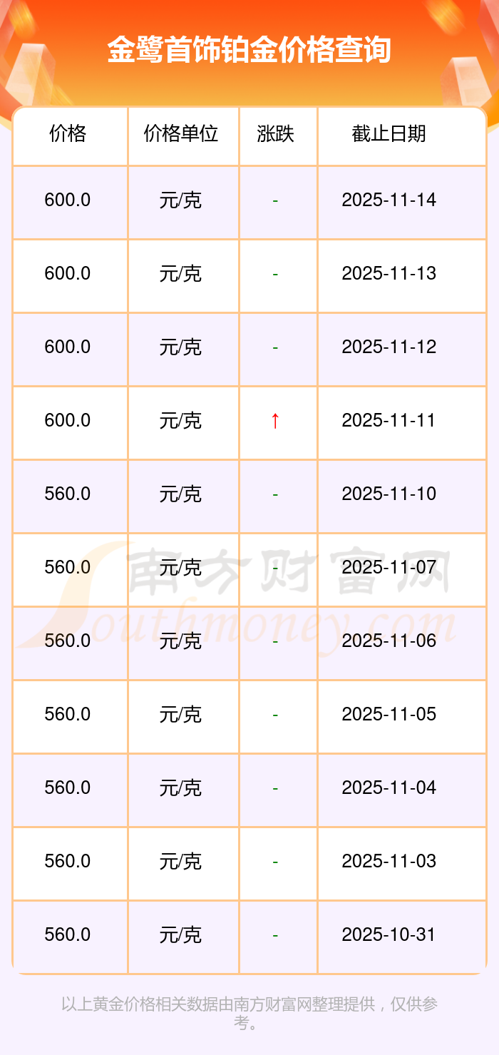 今日金鷺首飾鉑金價(jià)格最新為600.0元/克。