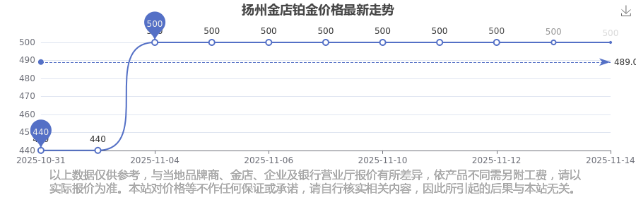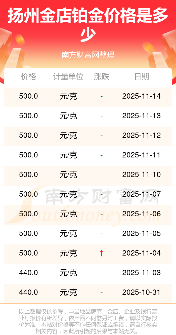 2025年11月16日揚(yáng)州金店鉑金價(jià)格最新是500.0元/克。
