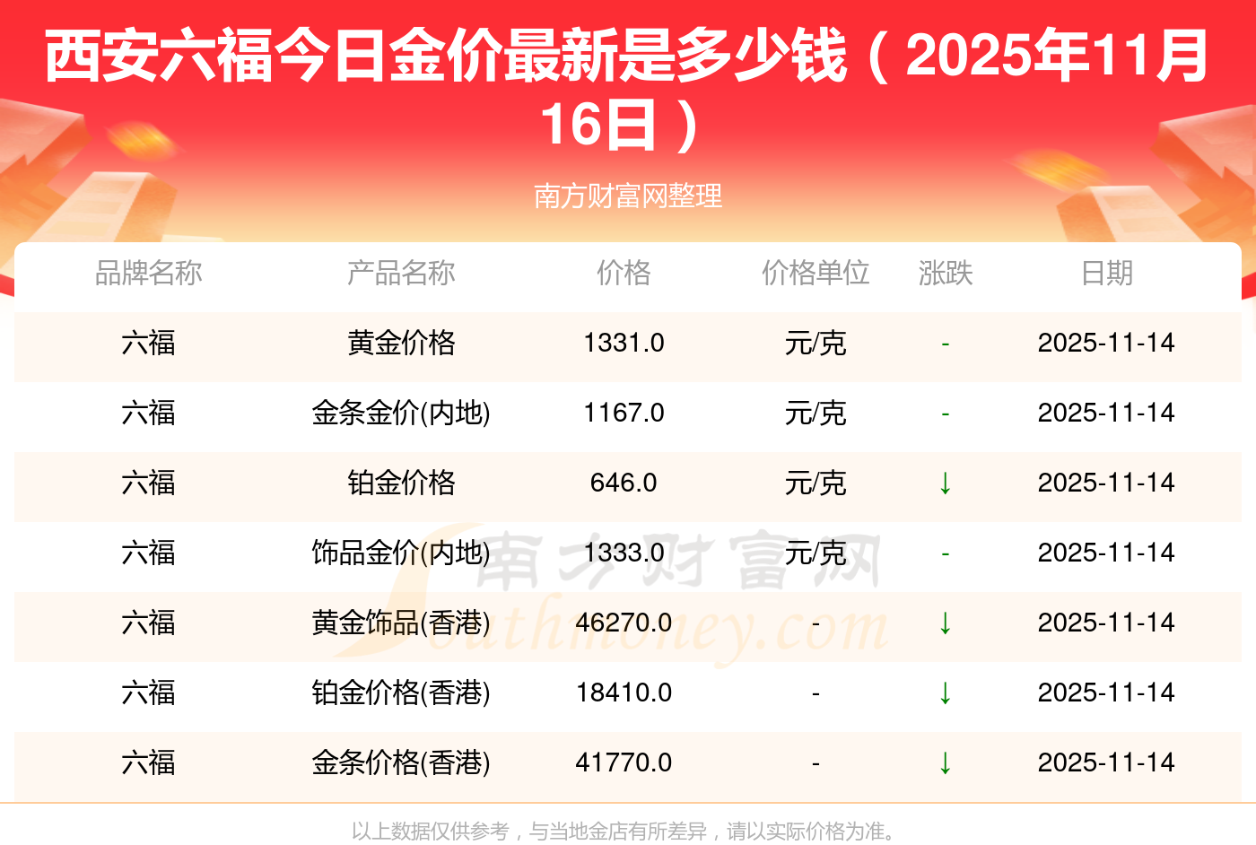 今天黃金價(jià)位怎樣?當(dāng)下一克黃金的價(jià)格為多少?2025年11月16日西安六,F(xiàn)在購買一克黃金需要支付多少錢?黃金價(jià)格1333.0元/克,鉑金價(jià)格646.0元/克,飾品金價(jià)(內(nèi)地)1333.0元/克,黃金飾品(香港)46320.0,鉑金價(jià)格(香港)18410.0,金條價(jià)格(香港)41780.0,金條金價(jià)(內(nèi)地)1167.0元/克,黃金價(jià)格1322.0元/克,鉑金價(jià)格600.0元/克,足金價(jià)格1322.0元/克,黃金價(jià)格1295.0元/克。