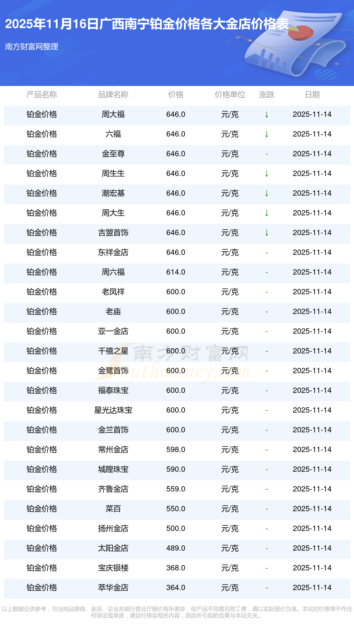 一、 廣西南寧各金店鉑金價(jià)格多少錢1克?廣西南寧各金店鉑金價(jià)格最新詳情