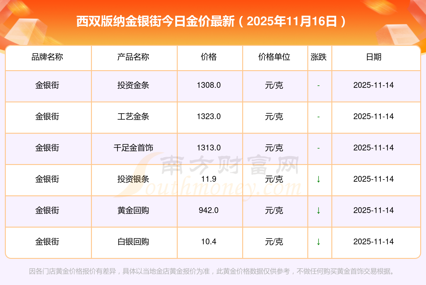 西雙版納金銀街今日金價查詢