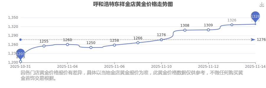 今日呼和浩特東祥金店黃金價(jià)格最新價(jià)格是1328.0元/克。