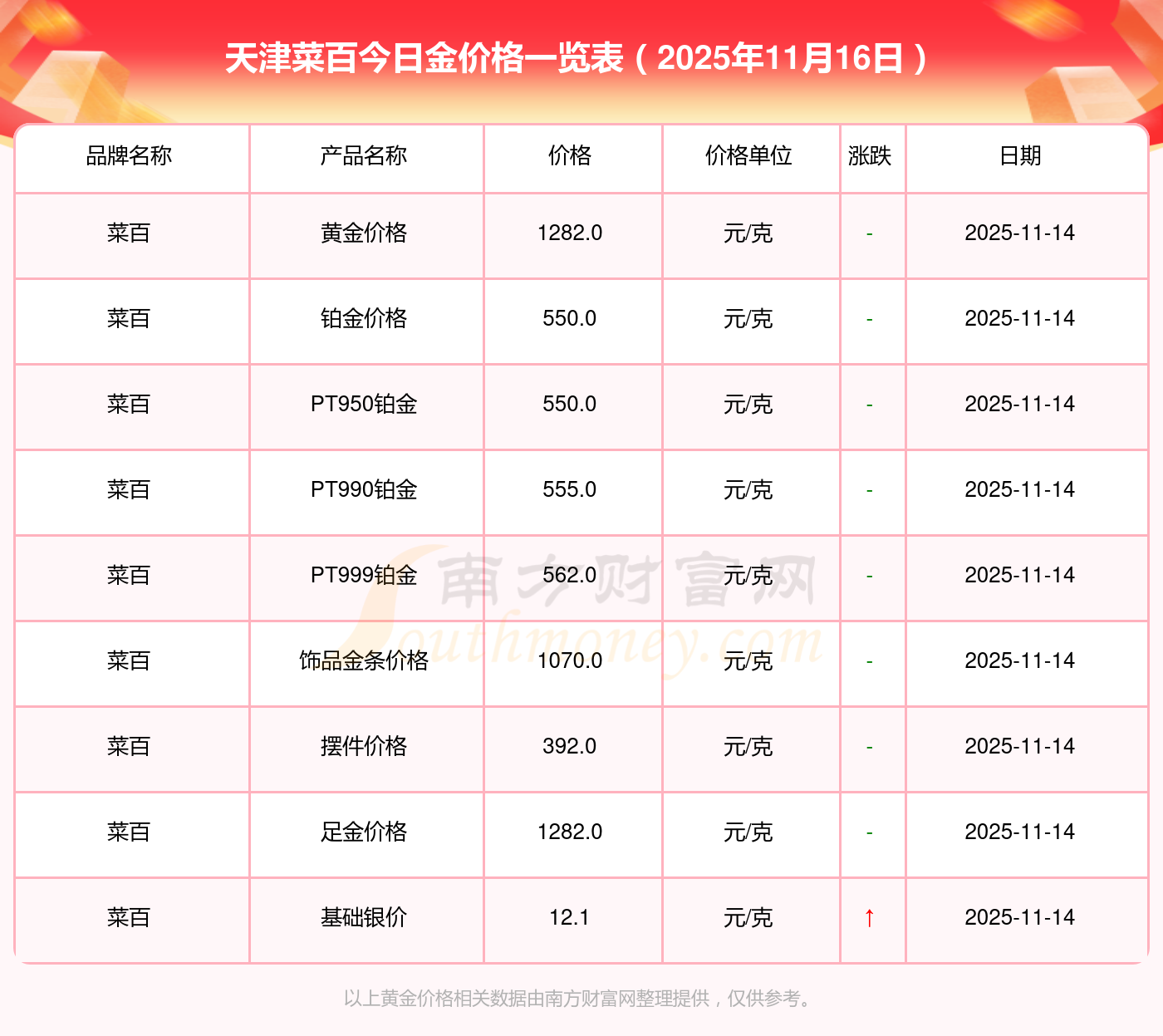 怎樣準(zhǔn)確計(jì)算黃金投資的收益情況?今日金價(jià)表_天津菜百現(xiàn)在金價(jià)黃金多少錢一克,詳情如下: