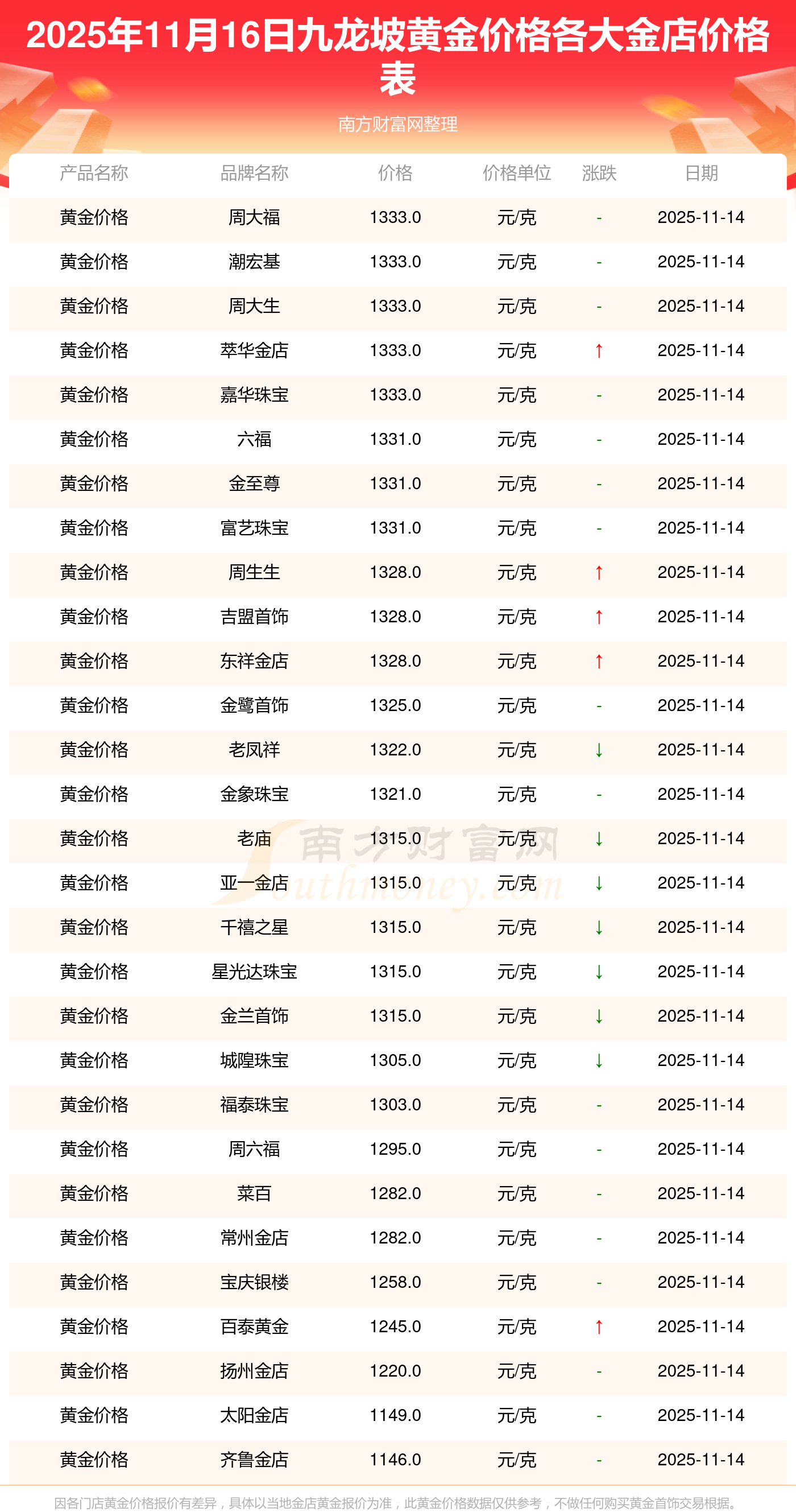 以上數(shù)據(jù)僅供參考,與當(dāng)?shù)亟鸬暧兴町,?qǐng)以實(shí)際價(jià)格為準(zhǔn)。