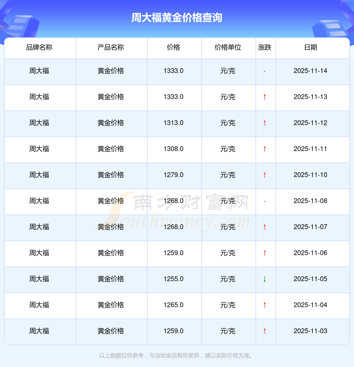 1333.0元/克是周大福在今日給出的 黃金價格最新價格。