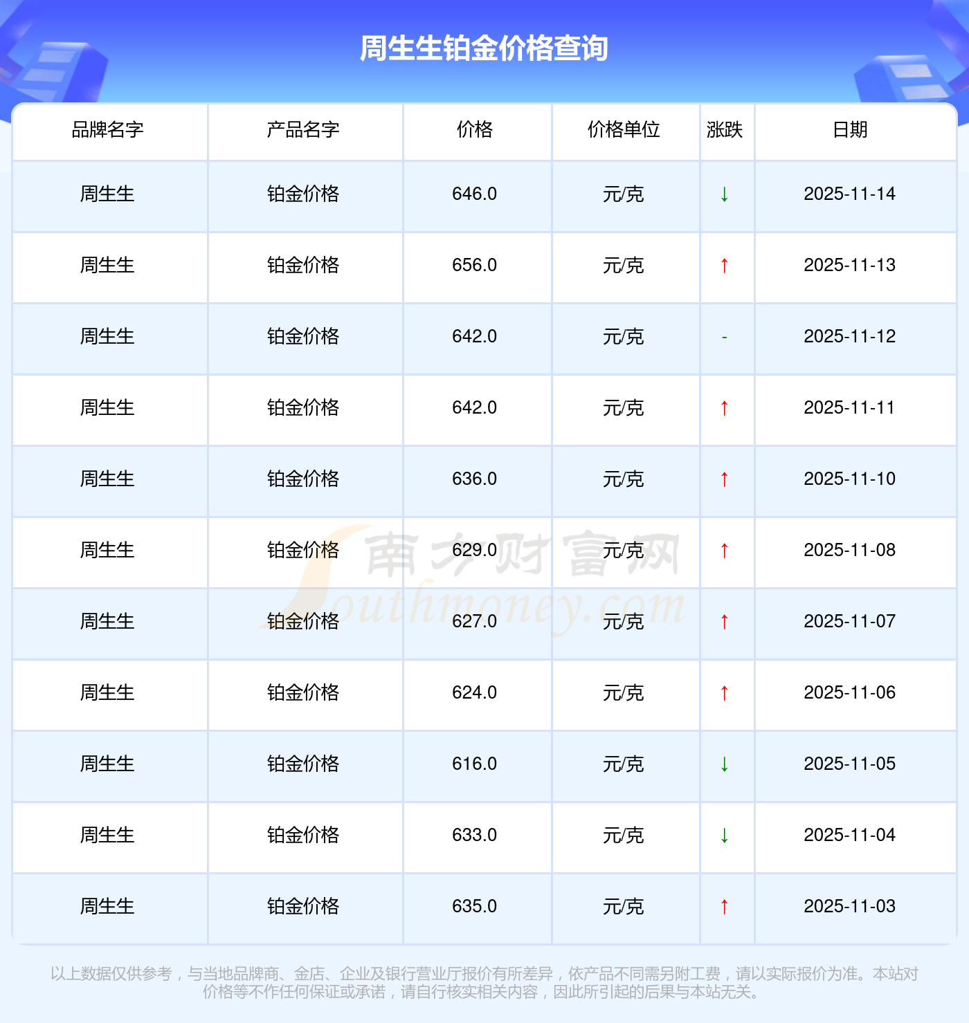 646.0元/克是周生生在今日給出的 鉑金價格最新價格。