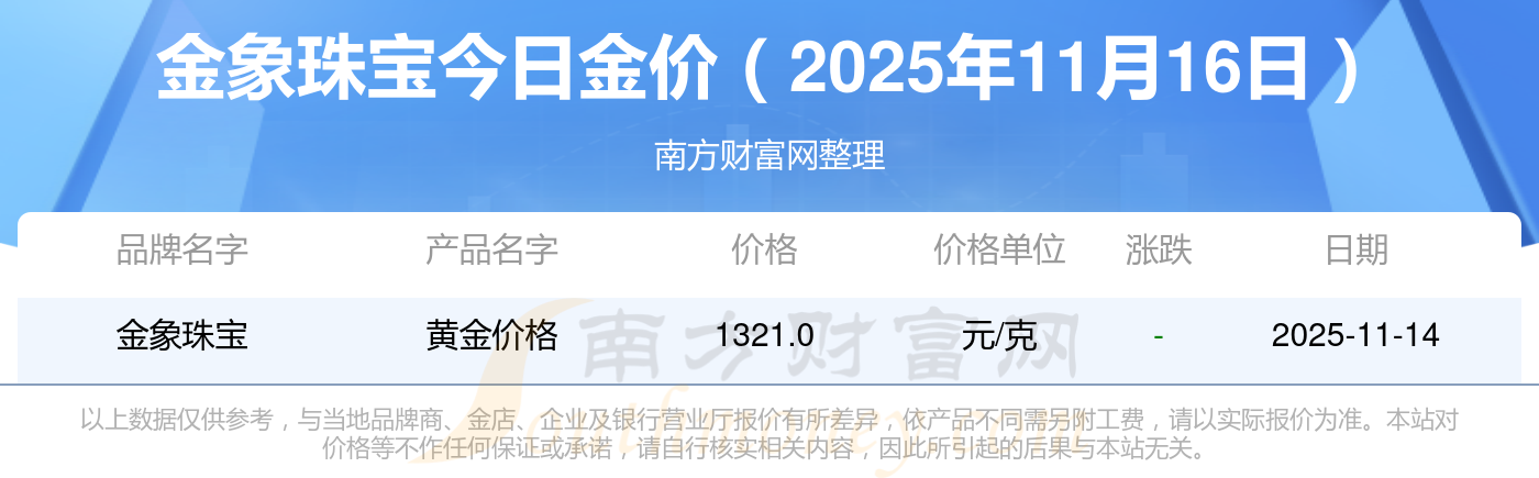 今天是2025年11月16日,周大福、周大福、周大福、周大福、周大福、周大福、周大福、老鳳祥、老鳳祥、老鳳祥、周六福等各大金店品牌黃金價(jià)格最新價(jià)格如下:周大福1333.0元/克、周大福646.0元/克、周大福1333.0元/克、周大福46320.0、周大福18410.0、周大福41780.0、周大福1167.0元/克、老鳳祥1322.0元/克、老鳳祥600.0元/克、老鳳祥1322.0元/克、周六福1295.0元/克。