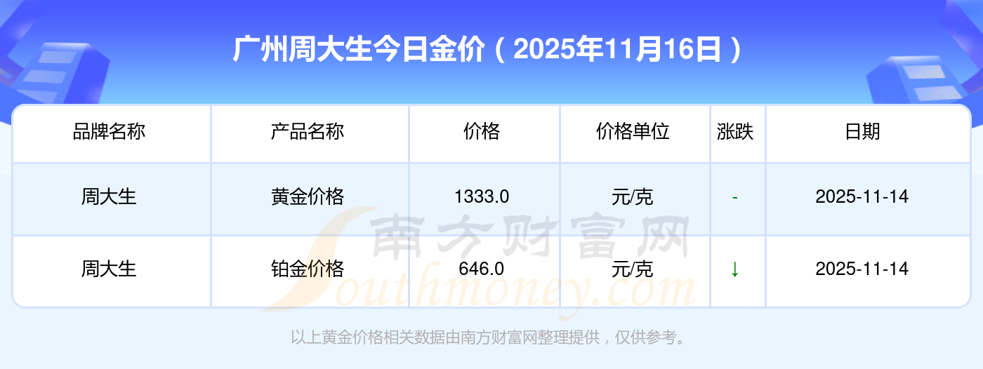 今日黃金價格具體是多少?現在一克黃金賣多少錢?2025年11月16日廣州周大生一克黃金的售價是多少:黃金價格1333.0元/克,鉑金價格646.0元/克,飾品金價(內地)1333.0元/克,黃金飾品(香港)46320.0,鉑金價格(香港)18410.0,金條價格(香港)41780.0,金條金價(內地)1167.0元/克,黃金價格1322.0元/克,鉑金價格600.0元/克,足金價格1322.0元/克,黃金價格1295.0元/克。