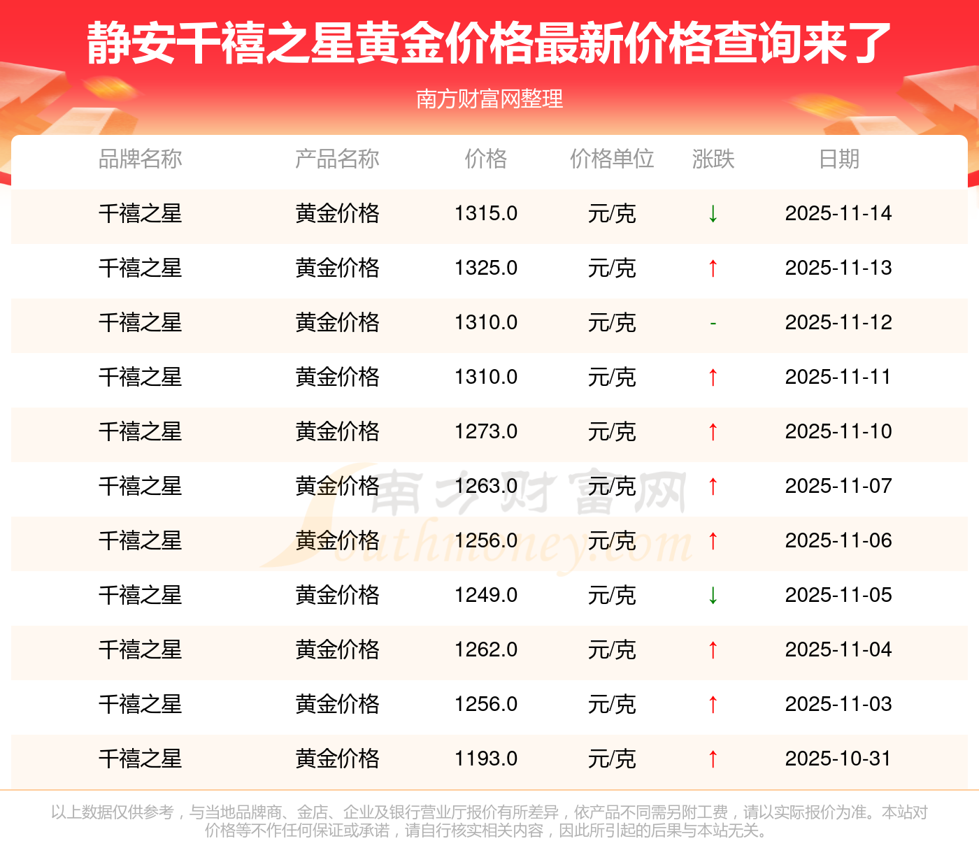 今日靜安千禧之星黃金價格查詢,今日靜安千禧之星黃金價格的價格為1315.0元/克。