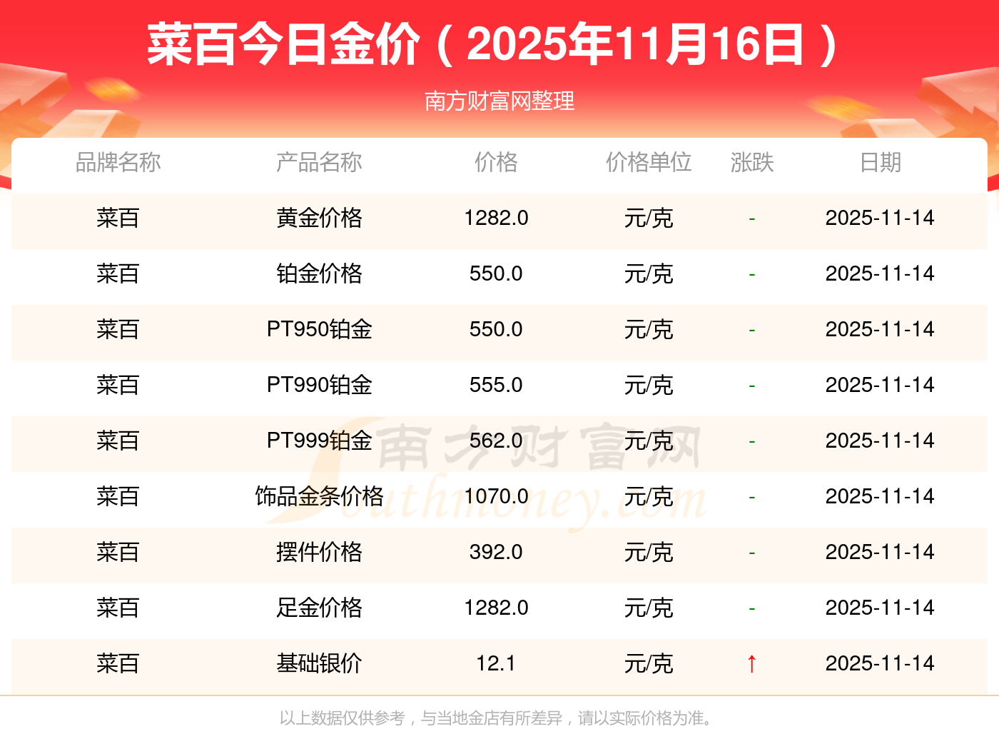 2025年11月16日各大金店黃金價(jià)格最新價(jià)格:周大福1333.0元/克,周大福646.0元/克,周大福1333.0元/克,周大福46320.0,周大福18410.0,周大福41780.0,周大福1167.0元/克,老鳳祥1322.0元/克,老鳳祥600.0元/克,老鳳祥1322.0元/克,周六福1295.0元/克。