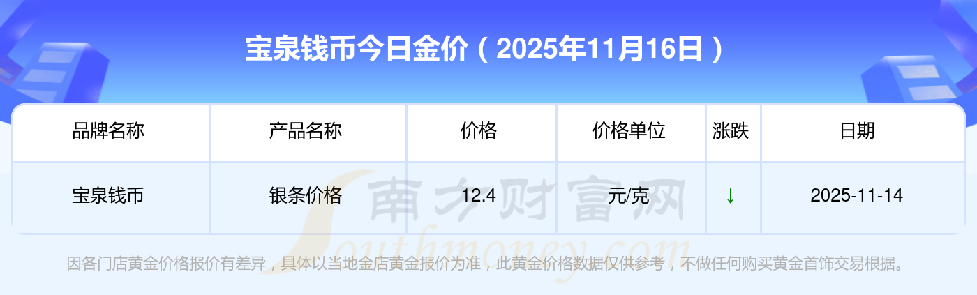 2025年11月16日寶泉錢幣金價查詢:黃金價格1333.0元/克,鉑金價格646.0元/克,飾品金價(內(nèi)地)1333.0元/克,黃金飾品(香港)46320.0,鉑金價格(香港)18410.0,金條價格(香港)41780.0,金條金價(內(nèi)地)1167.0元/克,黃金價格1322.0元/克,鉑金價格600.0元/克,足金價格1322.0元/克,黃金價格1295.0元/克。