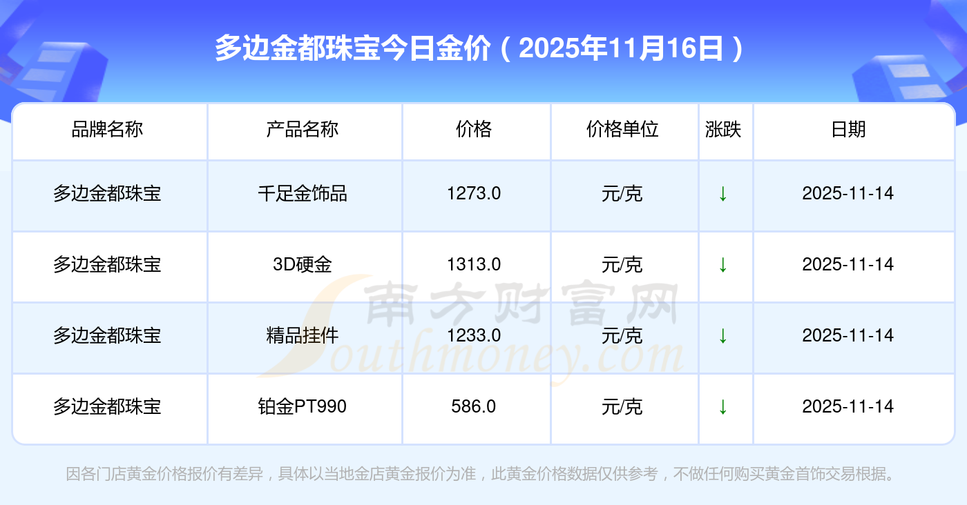 多邊金都珠寶今天的黃金價(jià)值幾何?詳情如下: