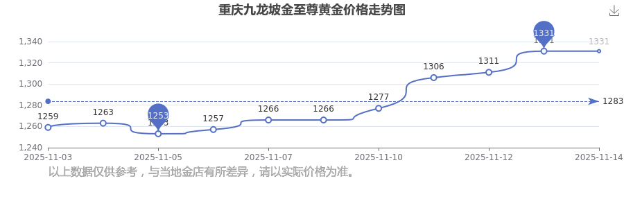 今日(2025年11月16日),重慶九龍坡金至尊黃金價(jià)格的定價(jià)為 1331.0元/克。