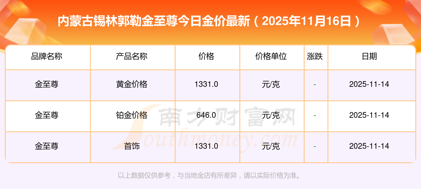 內(nèi)蒙古錫林郭勒金至尊金價(jià)今日價(jià)格最新_內(nèi)蒙古錫林郭勒金至尊黃金多少錢一克2025年11月16日,隨小編來了解一下詳情。