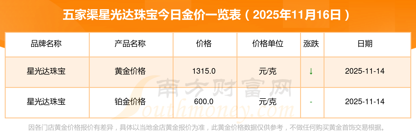 五家渠星光達(dá)珠寶今日金價_現(xiàn)在黃金多少錢一克?星光達(dá)珠寶最新價格查詢,隨小編來了解一下詳情。
