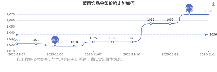 據(jù)了解,今日菜百 飾品金條價(jià)格的最新價(jià)格為1070.0元/克。