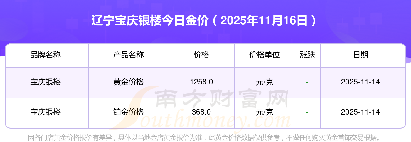 遼寧寶慶銀樓金價今日價格: