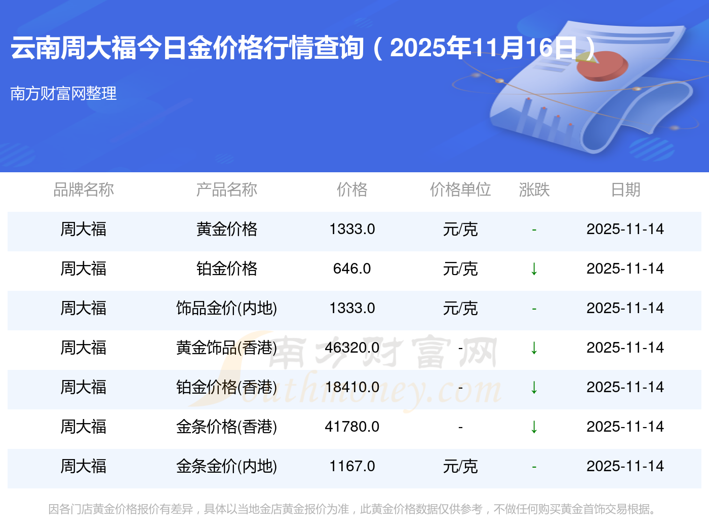 因各門店黃金價格報價有差異,具體以當(dāng)?shù)亟鸬挈S金報價為準(zhǔn),此黃金價格數(shù)據(jù)僅供參考,不做任何購買黃金首飾交易根據(jù)。