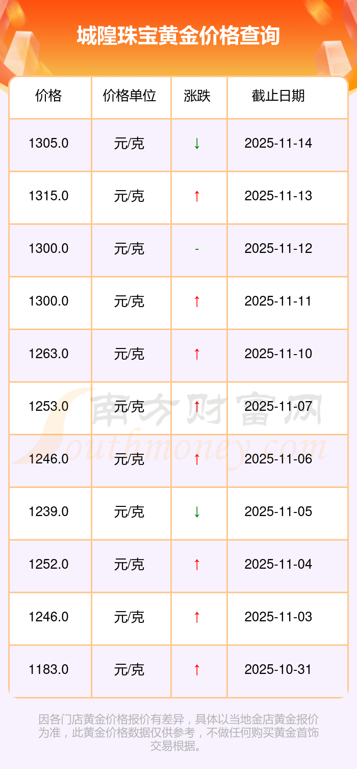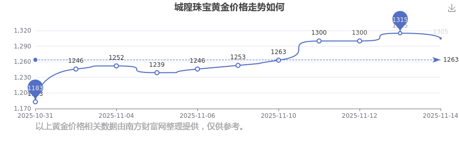 今天黃金價格行情怎樣?此刻每克黃金售價多少?黃金是一種優(yōu)良的導(dǎo)電導(dǎo)熱材料,具有良好的導(dǎo)熱特性。黃金常用于電子工業(yè)中的特殊電路設(shè)計,因其化學(xué)穩(wěn)定性高、抗氧化性強(qiáng),可制作高精度電子元件。今日(2025年11月16日)城隍珠寶黃金價格:1305.0元/克。