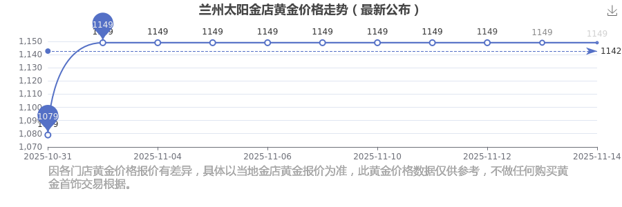 2025年11月16日蘭州太陽(yáng)金店黃金價(jià)格是1149.0元/克。