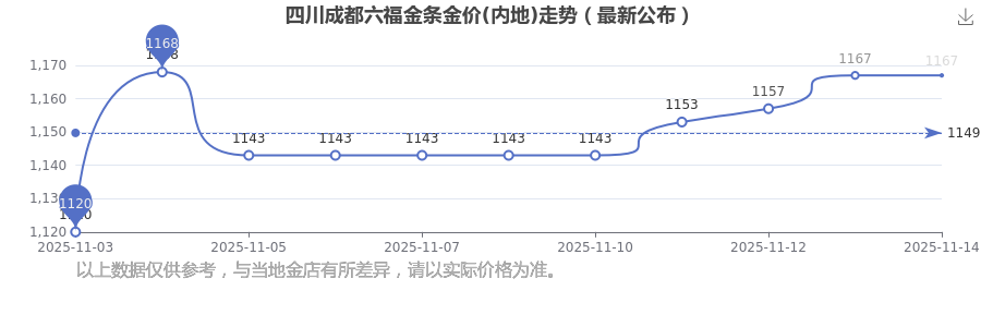 今日(2025年11月16日),1167.0元/克是四川成都六福金條金價(內(nèi)地)的價格標準。