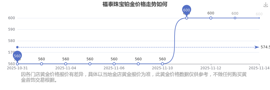 600.0元/克是福泰珠寶在今日給出的 鉑金價格最新價格。