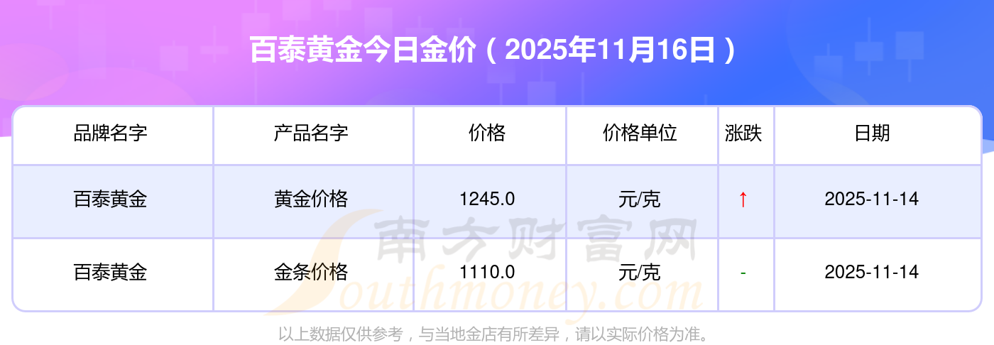 2025年11月16日各大金店黃金價格最新價格:周大福1333.0元/克,周大福646.0元/克,周大福1333.0元/克,周大福46320.0,周大福18410.0,周大福41780.0,周大福1167.0元/克,老鳳祥1322.0元/克,老鳳祥600.0元/克,老鳳祥1322.0元/克,周六福1295.0元/克。