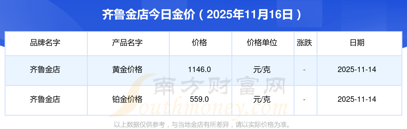 2025年11月16日齊魯金店金條多少錢1克 現(xiàn)在潼南齊魯金店黃金價格查詢