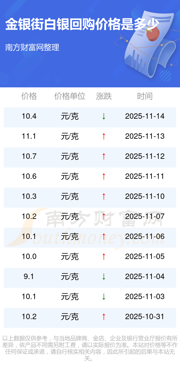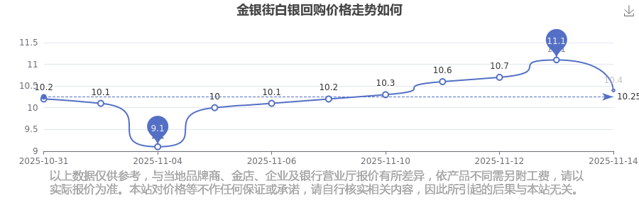 2025年11月16日金銀街白銀回購現(xiàn)在一克多少錢? 金銀街白銀回購價格最新查詢,一起來看看吧!