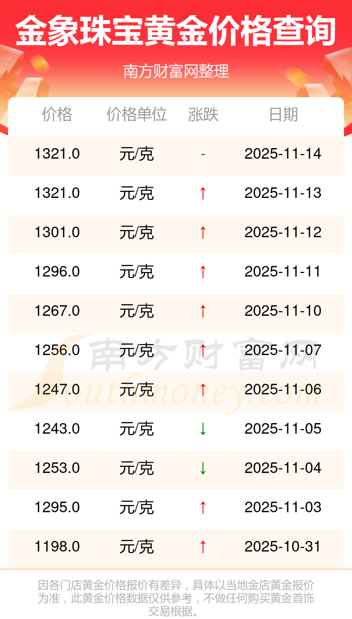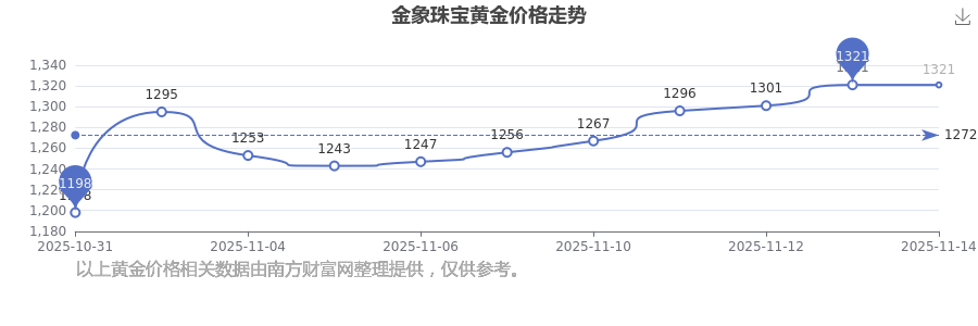 今日(2025年11月16日),金象珠寶黃金價(jià)格:1321.0元/克。