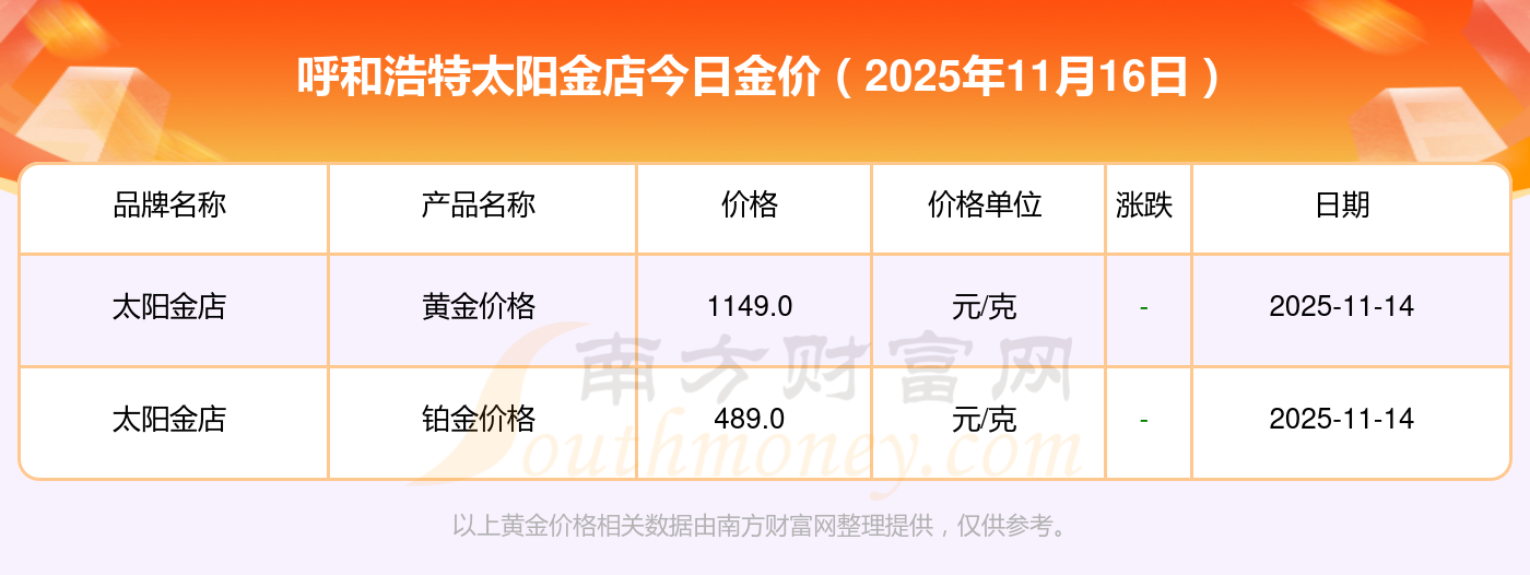 呼和浩特太陽金店今日一克黃金價值幾何?