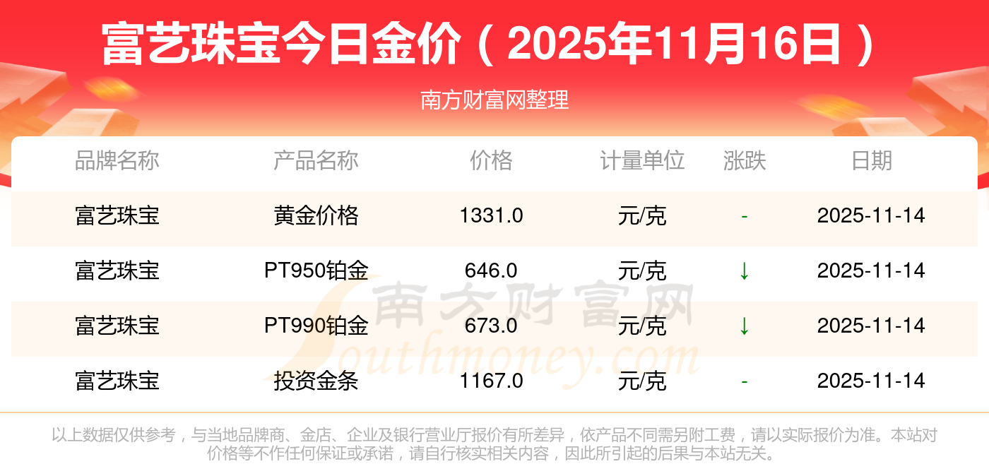 富藝珠寶今天的黃金價(jià)值幾何?詳情如下: