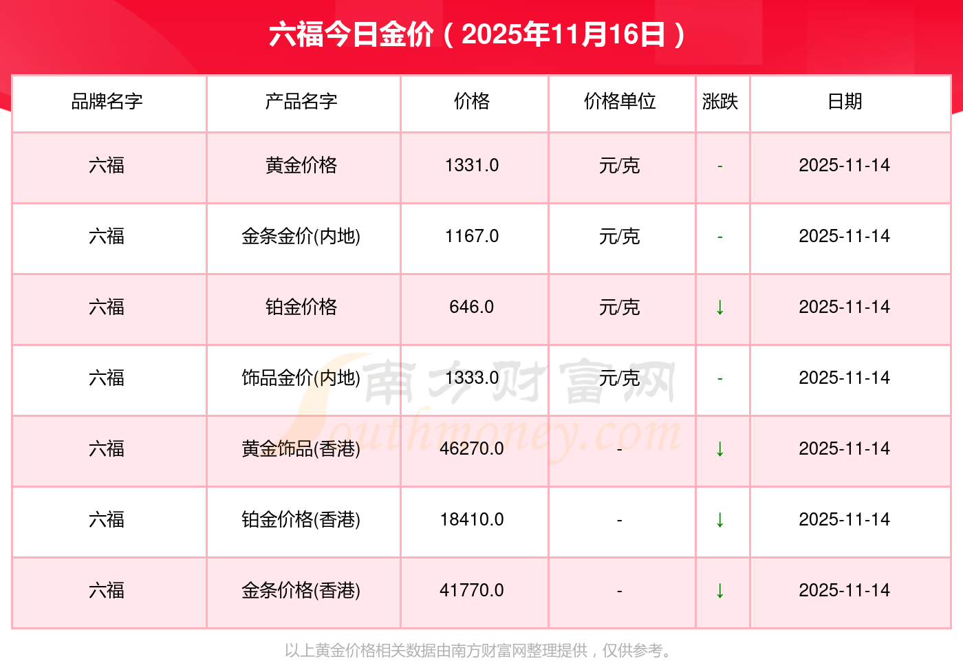 2025年11月16日六福黃金今日價(jià)格多少一克_六福金價(jià)實(shí)時(shí)行情來了,一起來看看吧!