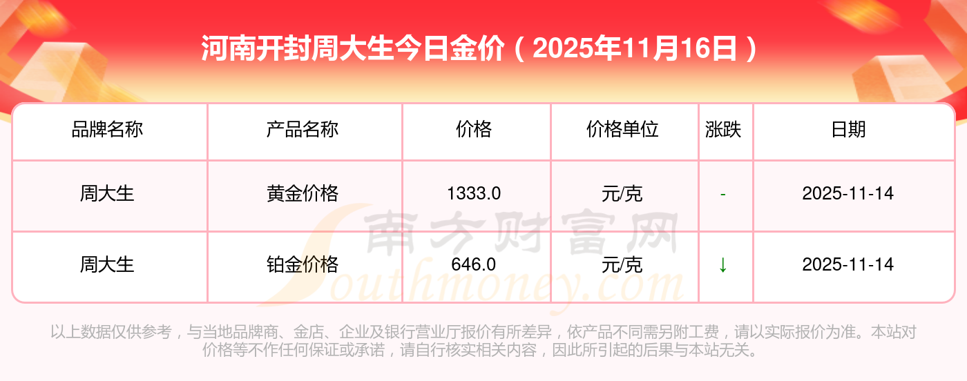 2025年11月16日河南開封周大生現(xiàn)在黃金一克要多少錢:黃金價(jià)格1333.0元/克,鉑金價(jià)格646.0元/克,飾品金價(jià)(內(nèi)地)1333.0元/克,黃金飾品(香港)46320.0,鉑金價(jià)格(香港)18410.0,金條價(jià)格(香港)41780.0,金條金價(jià)(內(nèi)地)1167.0元/克,黃金價(jià)格1322.0元/克,鉑金價(jià)格600.0元/克,足金價(jià)格1322.0元/克,黃金價(jià)格1295.0元/克。