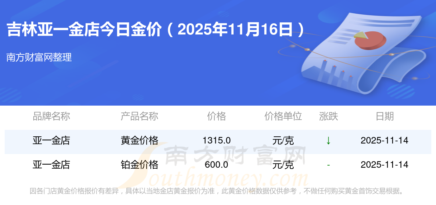 吉林亞一金店目前金價,一克的標價是多少?