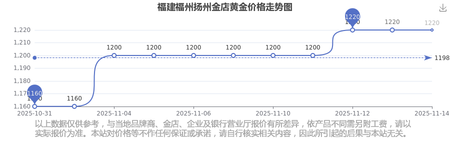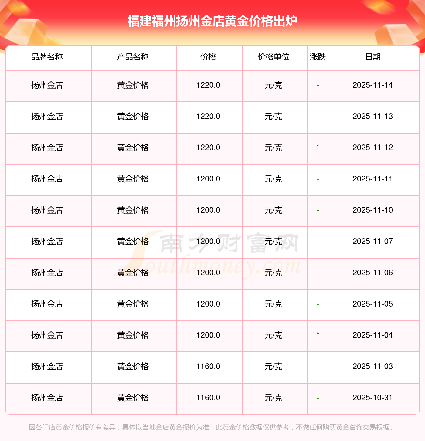 今日福建福州揚州金店黃金價格最新價格是1220.0元/克。