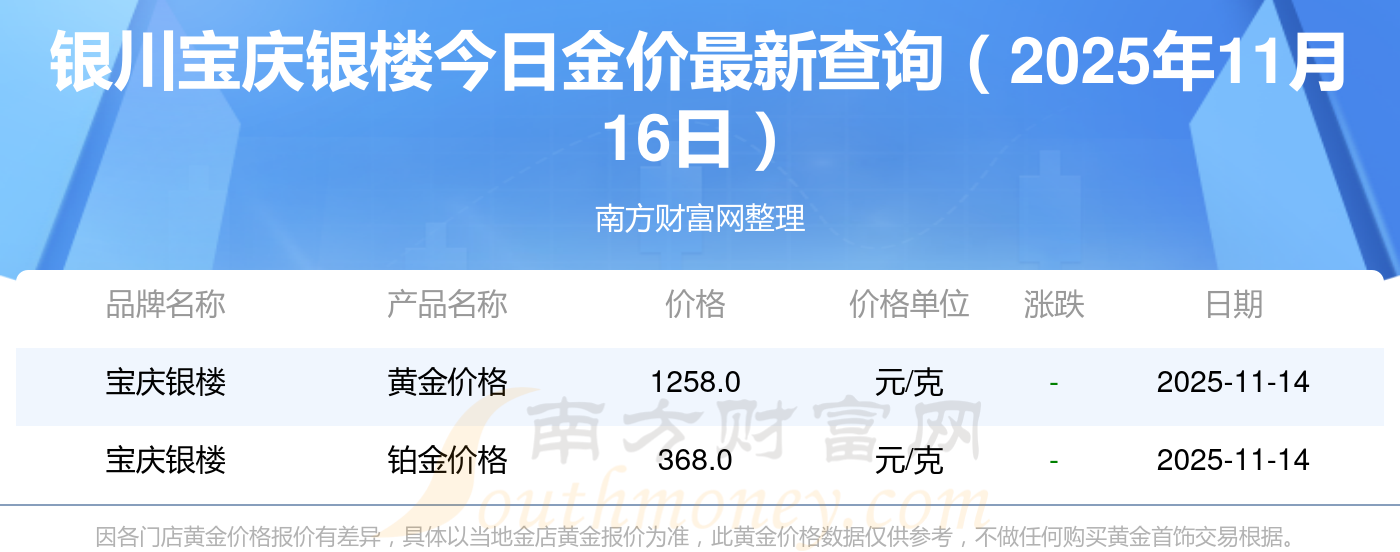 2025年11月16日銀川寶慶銀樓今日價(jià)格:黃金價(jià)格1333.0元/克,鉑金價(jià)格646.0元/克,飾品金價(jià)(內(nèi)地)1333.0元/克,黃金飾品(香港)46320.0,鉑金價(jià)格(香港)18410.0,金條價(jià)格(香港)41780.0,金條金價(jià)(內(nèi)地)1167.0元/克,黃金價(jià)格1322.0元/克,鉑金價(jià)格600.0元/克,足金價(jià)格1322.0元/克,黃金價(jià)格1295.0元/克。