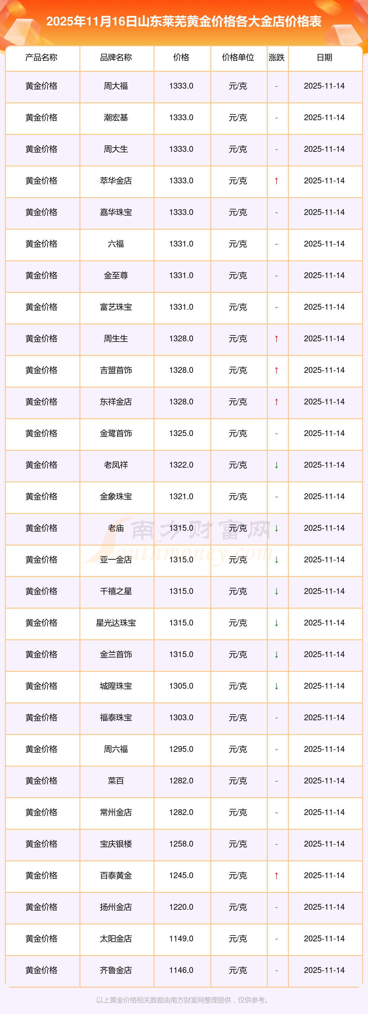 一、山東萊蕪各金店黃金價(jià)格是多少錢一克?最新山東萊蕪各金店黃金價(jià)格一覽表