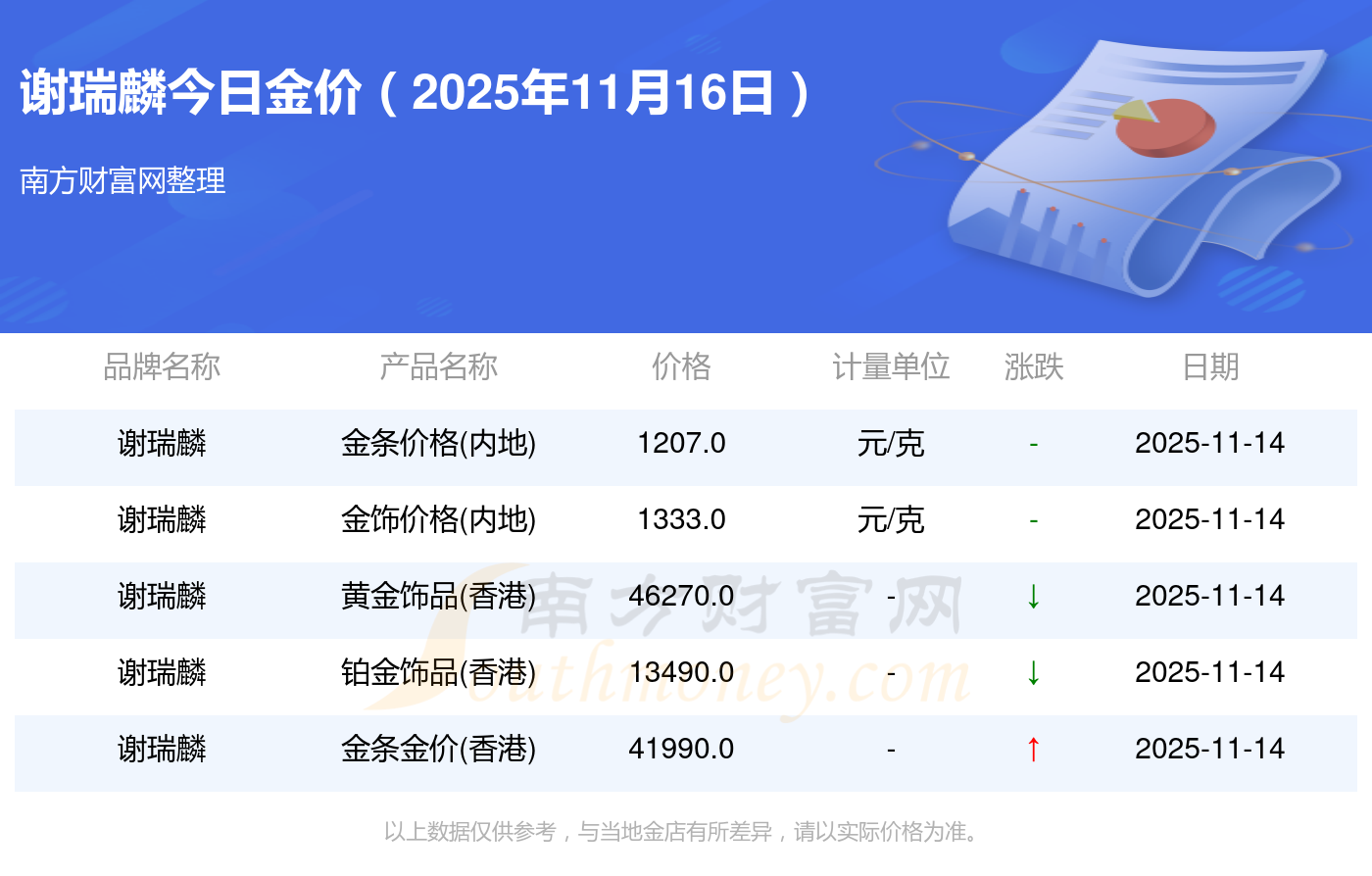 2025年11月16日謝瑞麟今日價格:黃金價格1333.0元/克,鉑金價格646.0元/克,飾品金價(內(nèi)地)1333.0元/克,黃金飾品(香港)46320.0,鉑金價格(香港)18410.0,金條價格(香港)41780.0,金條金價(內(nèi)地)1167.0元/克,黃金價格1322.0元/克,鉑金價格600.0元/克,足金價格1322.0元/克,黃金價格1295.0元/克。
