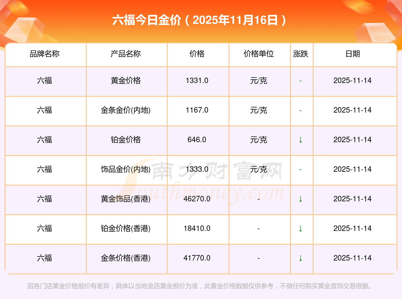 2025年11月16日六福黃金價格表_六福金價多少錢一克,一起來看看吧!