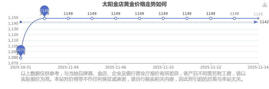 今日黃金價格具體是多少?現(xiàn)在一克黃金賣多少錢?通常情況下黃金每一克的價格大概是多少呢?最新數(shù)據(jù)表明,太陽金店今日 黃金價格為1149.0元/克。