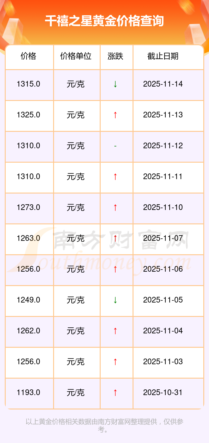 因各門店黃金價(jià)格報(bào)價(jià)有差異,具體以當(dāng)?shù)亟鸬挈S金報(bào)價(jià)為準(zhǔn),此黃金價(jià)格數(shù)據(jù)僅供參考,不做任何購買黃金首飾交易根據(jù)。