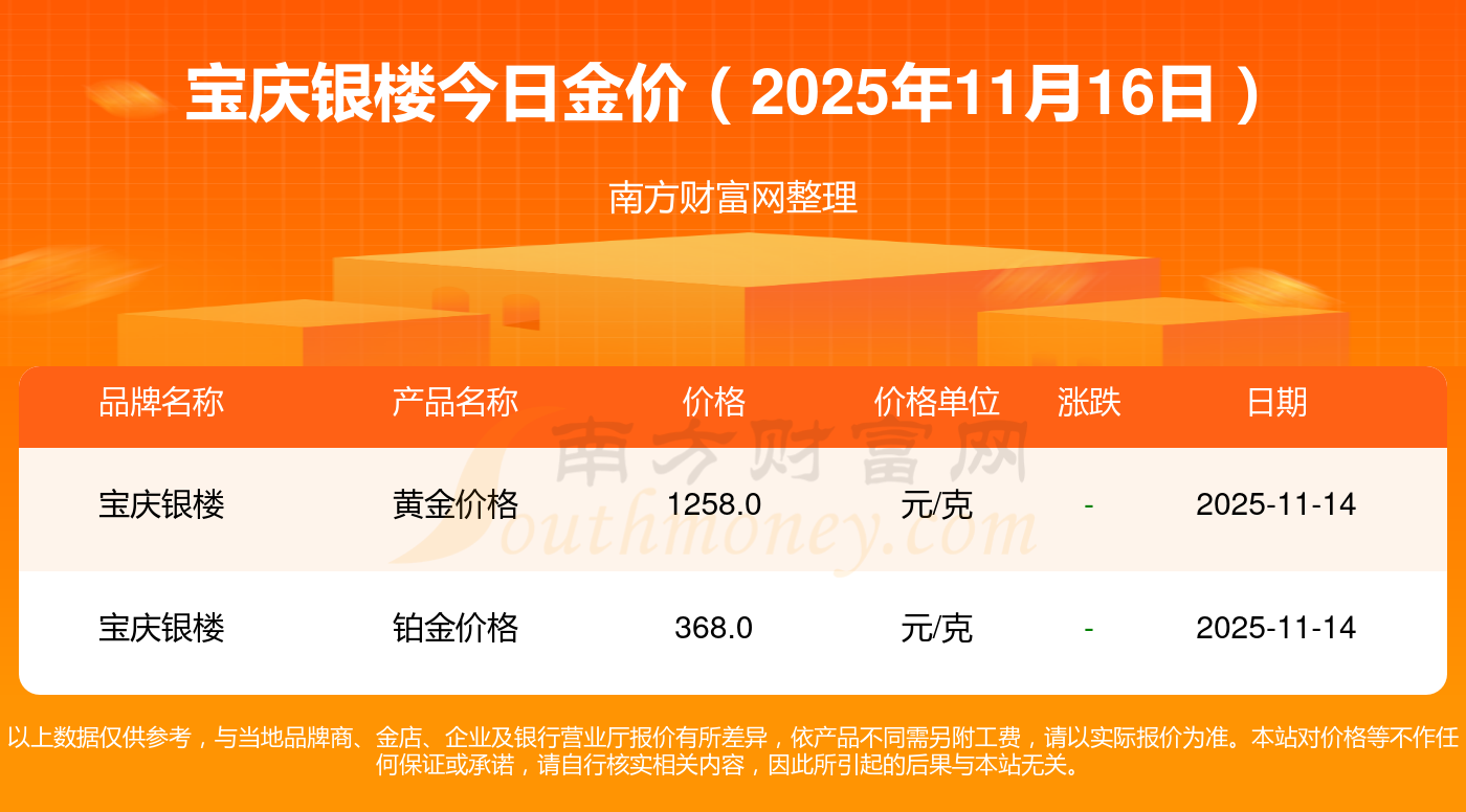 現(xiàn)在寶慶銀樓黃金價格是多少錢1克_2025年寶慶銀樓今日金價是多少錢一克,最新寶慶銀樓查詢,2025年11月16日寶慶銀樓黃金價格現(xiàn)在每克多少錢?最新寶慶銀樓黃金價格報價公布,一起來看看吧!