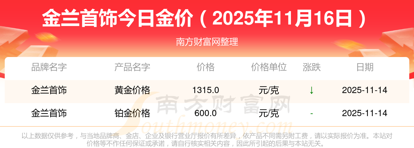 黃金價格1333.0元/克,鉑金價格646.0元/克,飾品金價(內(nèi)地)1333.0元/克,黃金飾品(香港)46320.0,鉑金價格(香港)18410.0,金條價格(香港)41780.0,金條金價(內(nèi)地)1167.0元/克,黃金價格1322.0元/克,鉑金價格600.0元/克,足金價格1322.0元/克,黃金價格1295.0元/克。