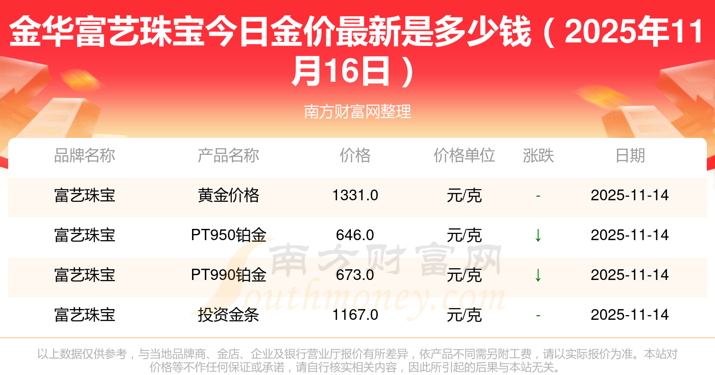 2025年11月16日金華富藝珠寶一克黃金的售價是多少:黃金價格1333.0元/克,鉑金價格646.0元/克,飾品金價(內(nèi)地)1333.0元/克,黃金飾品(香港)46320.0,鉑金價格(香港)18410.0,金條價格(香港)41780.0,金條金價(內(nèi)地)1167.0元/克,黃金價格1322.0元/克,鉑金價格600.0元/克,足金價格1322.0元/克,黃金價格1295.0元/克。