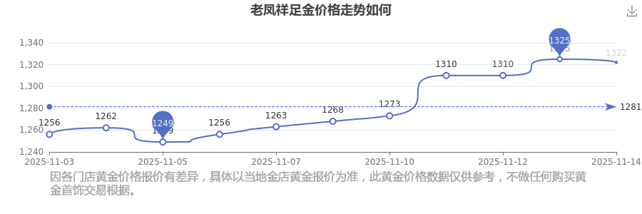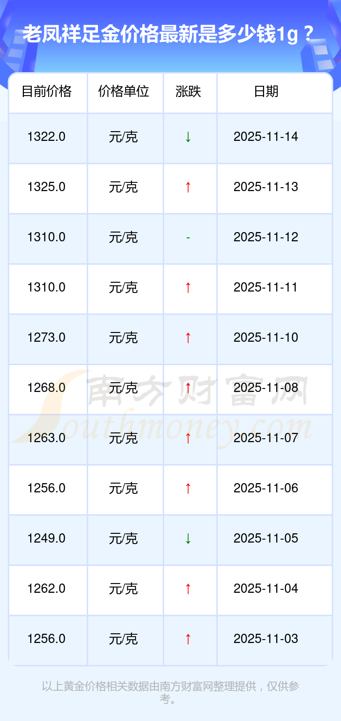 老鳳祥今日足金價格的最新標(biāo)價為1322.0元/克。