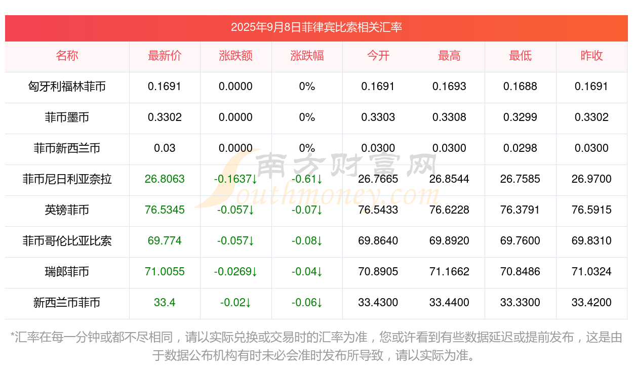 2025年9月8日菲律賓比索相關(guān)匯率查詢(xún)