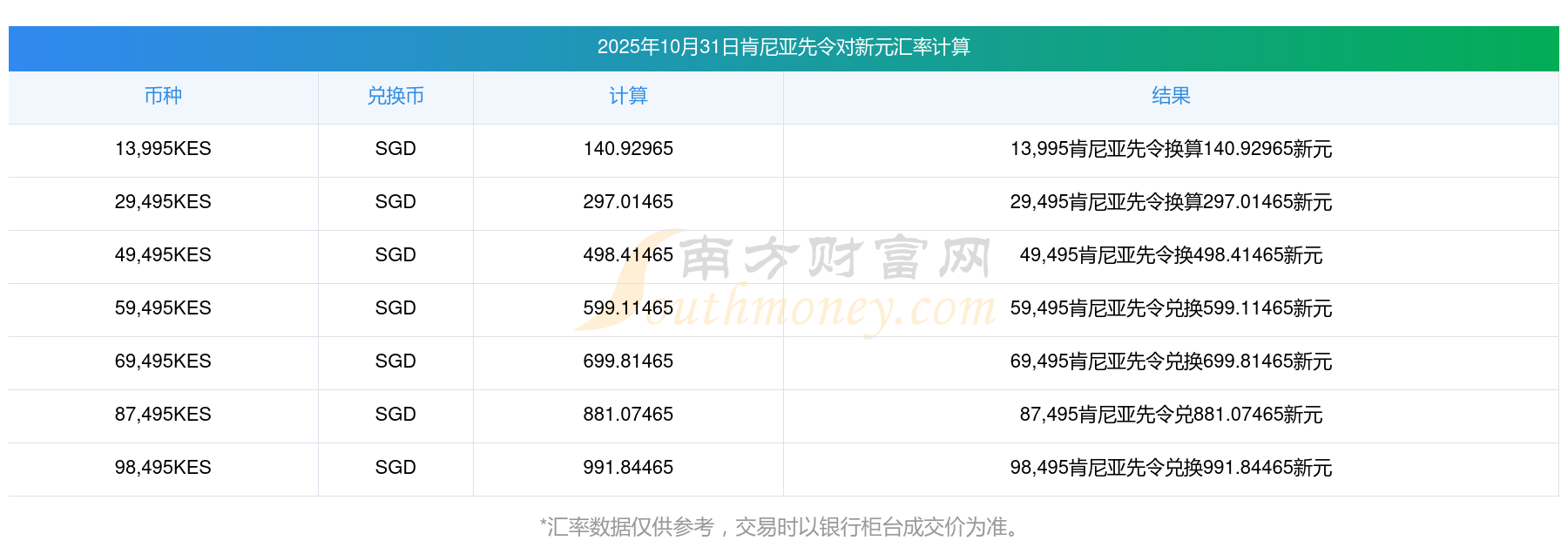 今天134肯尼亞先令轉(zhuǎn)換為新元匯率計(jì)算多少?10-31