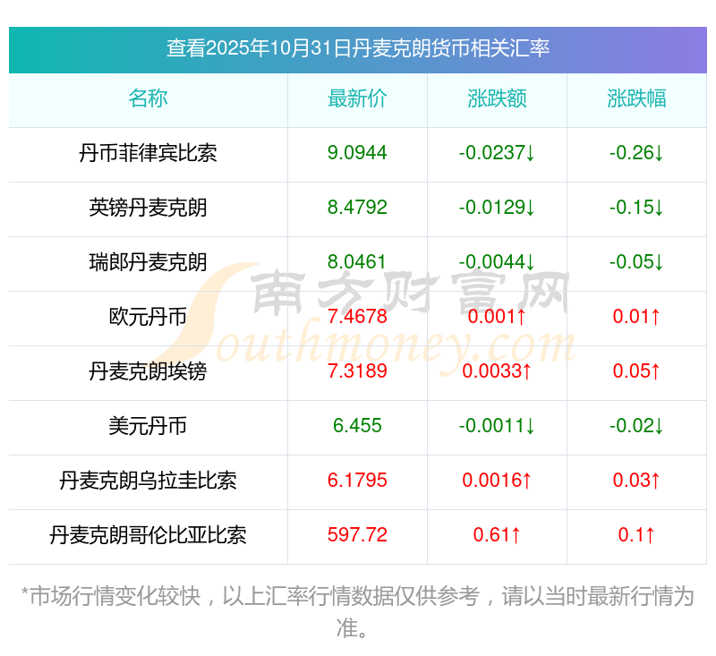 2025年10月31日丹麥克朗相關(guān)匯率查詢